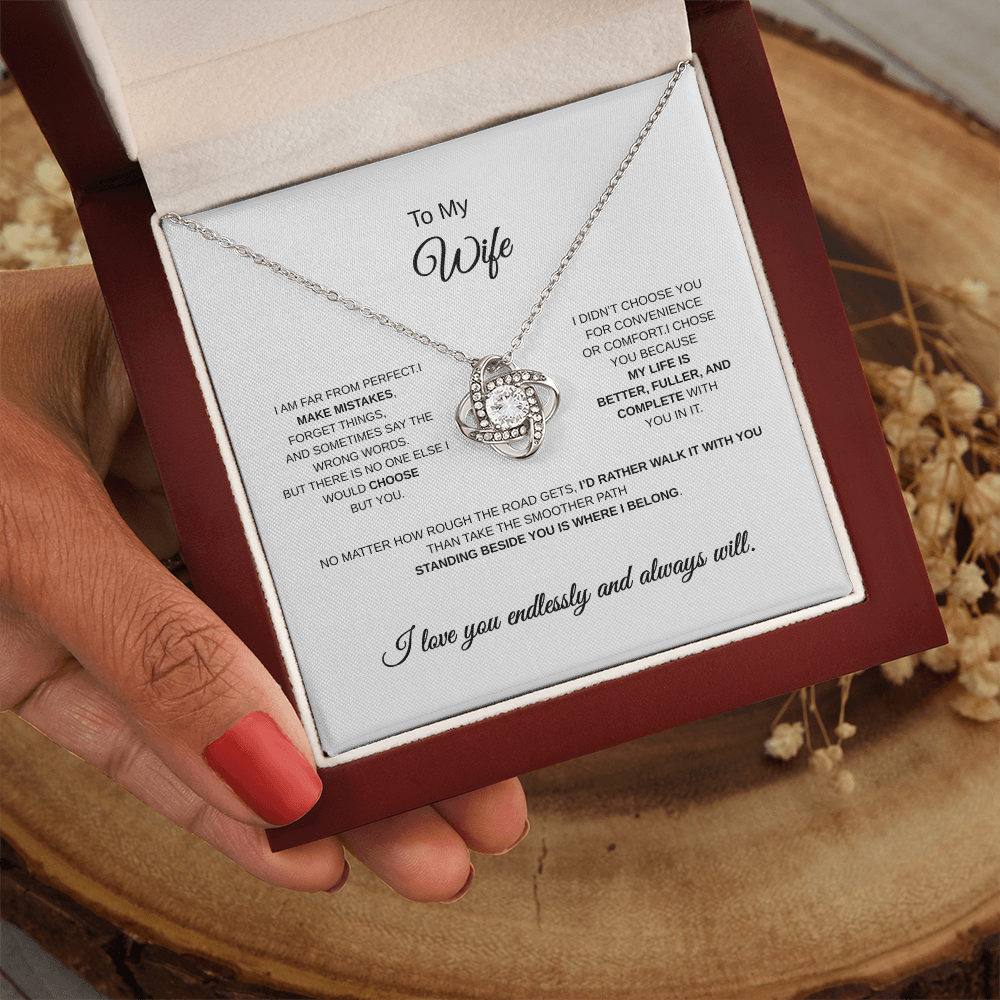 Imagine her reaction receiving this beautiful Love Knot Necklace. Representing an unbreakable bond between two souls, this piece features a beautiful pendant embellished with premium cubic zirconia crystals. Surprise your loved one with this gorgeous gift today!